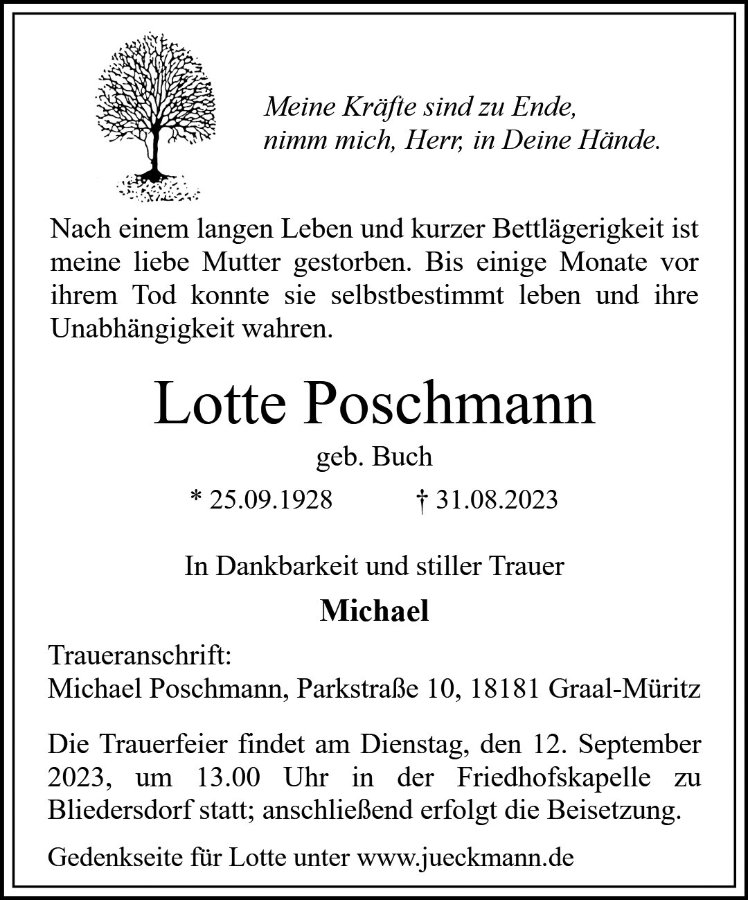 ein langes und erfülltes Leben Ihrer Angehörigen ging nun friedvoll und in Dankbarkeit zu Ende. Ich möchte Ihnen, auch im Namen meiner Familie, unser Mitgefühl und unsere Anteilnahme aussprechen.