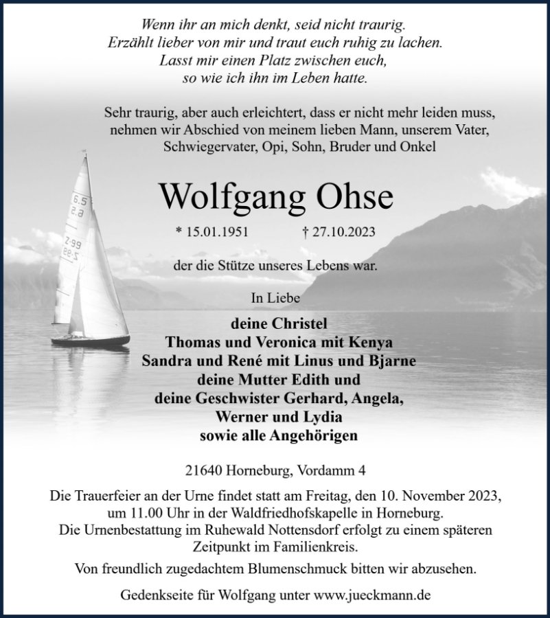 obwohl es absehbar war, hat mich die Nachricht von Wolfgangs Tod sehr getroffen.